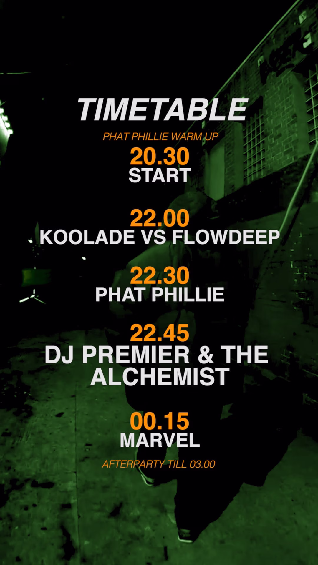Otkrivena je satnica za večerašnji spektakl u Boogaloo Clubu! Vrata se otvaraju u 20:30, Koolade & Flowdeep stupaju na pozornicu u 22:00, nakon čega slijede Phat Phillie u 22:30, te DJ Premier & The Alchemist u 22:45. Za afterparty od 00:30 do 03:00 zadužen je zagrebački DJ i producent, Marvel. Satnica je podložna promjenama. Vidimo se večeras na koncertu godine!