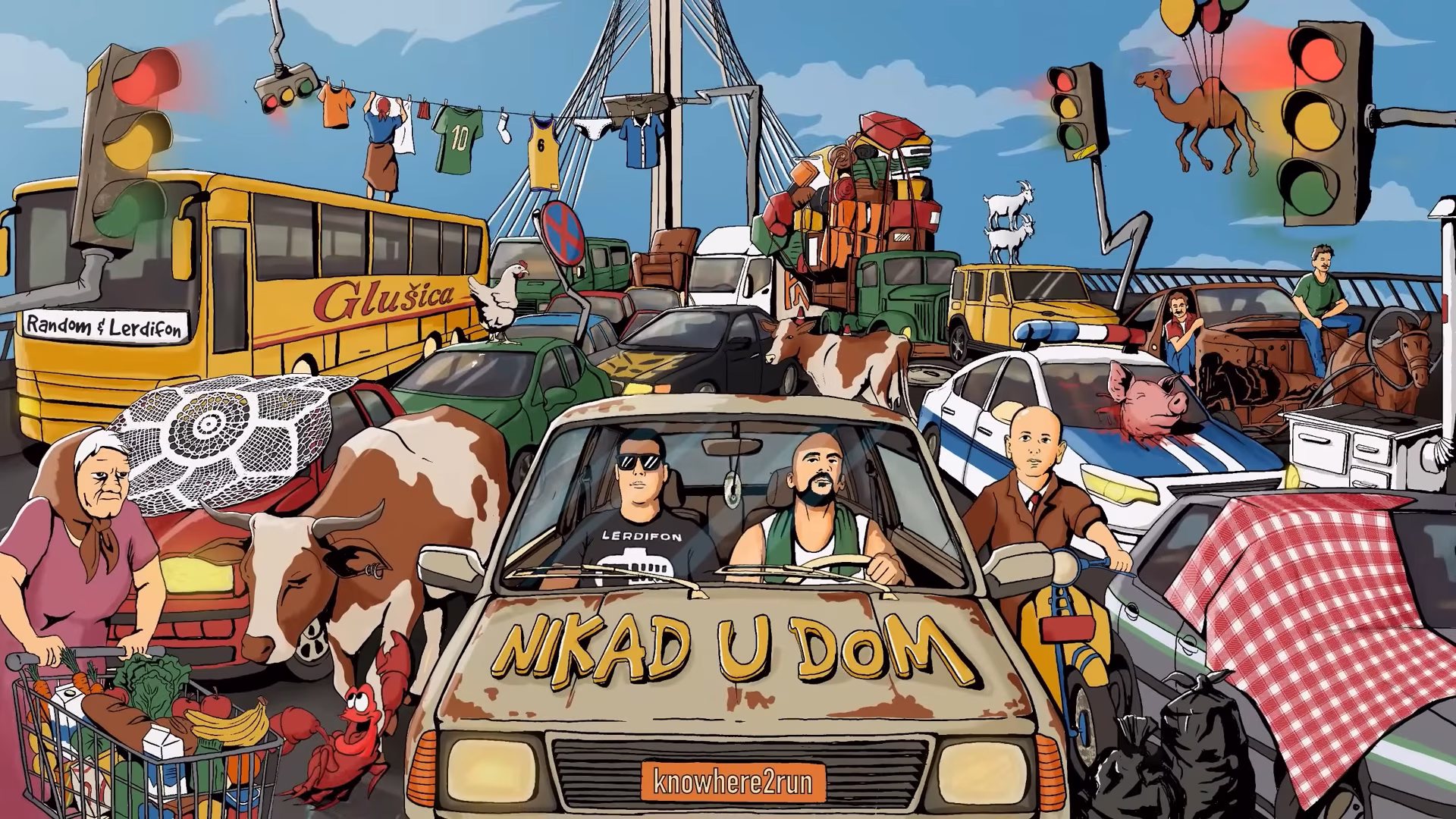 Kaos u podgoričkom prometu i kolone automobila u glavnom gradu su u reperu Randomu (Marko Lubarda) uzburkali dovoljno negativnih emocija da ih pretoči u stihove, što je rezultiralo objavom nove pjesme “Nikad u dom”. Muziku potpisuje kreativni i produktivni tandem Knowhere2run (Todor Tadić i Marko Ćaćić), dok je numeru strofom upotpunio Lerdifon (Miloš Raičković). Reperi iz Podgorice su ovim putem dočarali doživljaj zarobljenosti u prometnoj špici. Autor ilustracije je Fly Killah (Petar Ljubenko), dok je vokalnu podršku pružila Jelena Milovanović iz grupe “Jelene”.